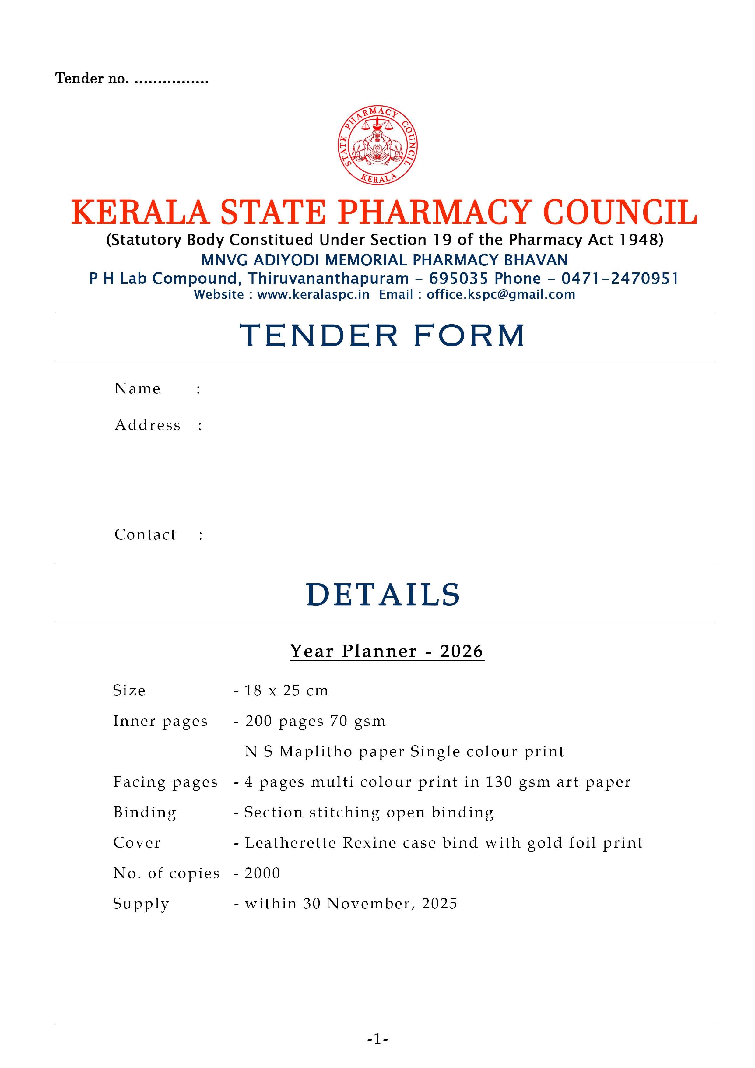 All registered pharmacists are requested to renew their KSPC registration for 2026 by visiting their respective profile pages.എല്ലാ രജിസ്റ്റേർഡ് ഫാർമസിസ്റ്റുകൾക്കും അവരുടെ KSPC രജിസ്ട്രേഷൻ 2026 ലേക്ക് അവരവരുടെ പ്രൊഫൈൽ പേജിലൂടെ 01/12/2025 മുതൽ പുതുക്കാവുന്നതാണ് . (www.keralaspc.in)